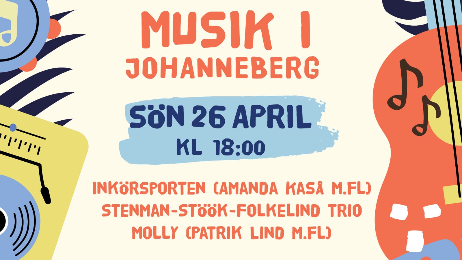 ![]() ![]() Musik i Johannebergs presenterar tre band med anknytning till kyrkan. Amanda Kaså med Inkörsporten, Stenman-Stöök-Folkelind trio & bandet Molly. Tillsammans blir det en kväll med olika röster och musikstilar. Gratis entré - men möjlighet att swisha en gåva till kyrkans verksamhet. Under kvällen blir det även paus med enklare fika. |